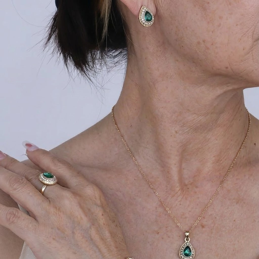 Conjunto de Joias em Forma de Gota de Esmeralda Atemporal